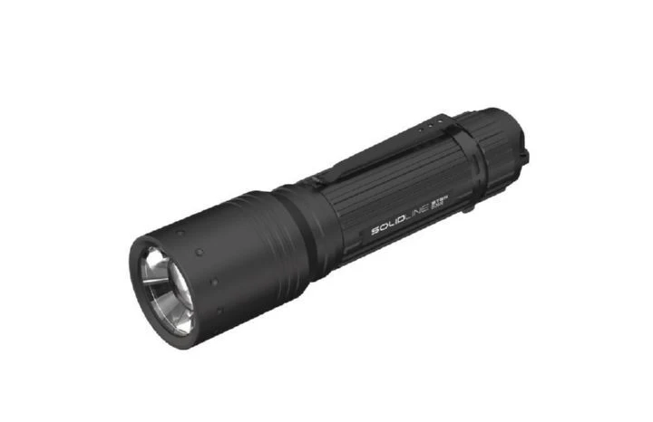 Die wiederaufladbare Taschenlampe Solidline ST8R ist das Flaggschiff der Solidline-Range mit bester Qualität für preisbewusste Nutzer. Ihr Gehäuse ist aus hochwertigem Aluminium gefertigt, was sie besonders unempfindlich gegen schwere Stöße und starken Regen macht. Das Fokussiersystem sorgt mit einem Dreh für gleichmäßiges Nahlicht oder fokussiertes Fernlicht. Ein leistungsstarker 18650er Lithium-Ionen-Akku mit 2500 mAh sorgt für die Energie der drei Lichtstufen. Der Magnetkontakt im Floating Charge System macht den Ladevorgang komfortabel. Die Lampe bleibt während des Ladens in der Ladeschale zugänglich, das umständliche Entnehmen des Akkus entfällt. Befestigt man die Ladeschale an der Wand, sieht es so aus, als ob die Lampe darin schwebt. Länge: 15,3 cm. Lichtleistung (Boost-Modus): 600 lm für bis zu 300 m Leuchtweite. Lieferumfang: Leuchte, Akku, Magnetladesystem, Metallclip. Gewicht der Leuchte mit Akku: 221 g. Schutzklasse IP54.