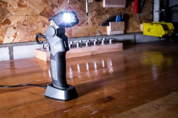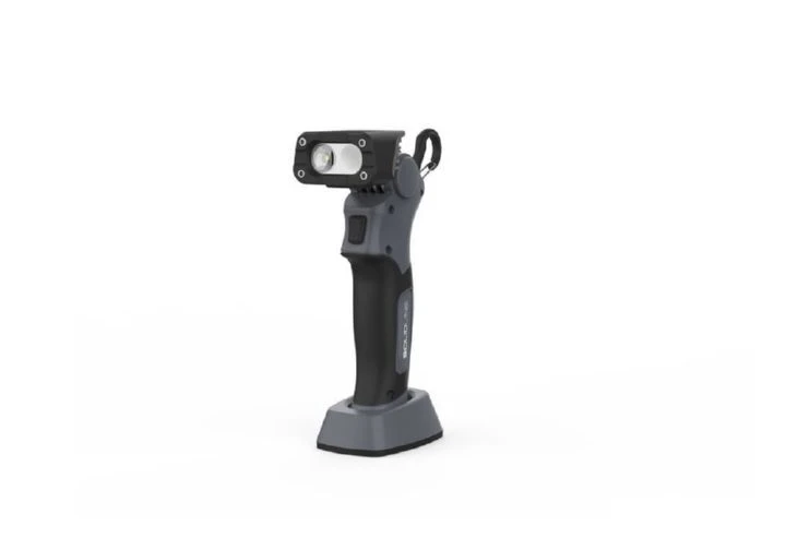 Die aufladbare Arbeitsleuchte Solidline SW3R liefert starkes Licht für viele Arbeitseinsätze rund um Haus, Werkstatt, Garage oder Garten. Ihr robuster, geschützter Lampenkopf aus Aluminium ist um 120° schwenkbar und kann deshalb besonders flexibel ausgerichtet werden. In Kombination mit den verschiedenen Helligkeitsstufen leuchtet die SW3R somit immer dort, wo sie gebraucht wird. Ihr gummierter Griff, der integrierte Karabinerhaken und ein Magnet im Lampenfuß sorgen für flexibles und sicheres Handling in verschiedenen Situationen. Dank der professionellen, im Lieferumfang enthaltenen Ladeschale ist der kraftvolle Akku dabei jederzeit schnell aufgeladen. Alternativ direkt aufladbar per USB-C-Schnittstelle am Griff. Mit integrierter Akku- und Ladestandsanzeige. Maße: 16,8 x 7,6 x 5,4 cm. Lichtleistung: Flutlicht max. 400 lm für bis zu 30 m Leuchtweite. Spot-LED max. 700 lm für bis zu 140 m Leuchtweite. Eingebauter 21700er Li-Ion-Akku mit 4500 mAh. Lieferumfang: Leuchte mit Akku, USB-Ladekabel. Gewicht der Leuchte mit Akku: 252 g. Schutzklasse IP54.